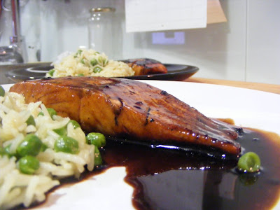 Salmão vidrado com Mirin